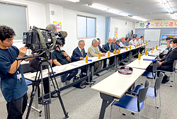 広島県商工団体連合会(県連)は10月10日、7回目となる広島県との個別会議を広島民主商工会(民商)事務所で開催。民商・県連から13人が、県側は商工労働局商工労働総務課などから4人が参加しました。3年連続で取り組んだ営業動向調査の第1次集約(回答700人、9月30日時点)を基にまとめた「政策提言2024(第1次案)」を手渡し、懇談。同日夕方の広島ホームテレビでも報道されました。