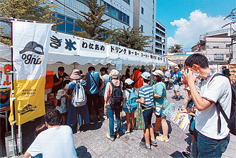 約60の中小業者が、本業を生かして出店。古本、畳コースター、野菜、唐揚げ、コロッケ、コーヒー、おにぎり、ジェラート、ヨーヨーなどが並びました。