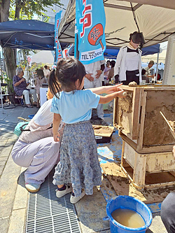 毎年、楽しみにしてくれる参加者も増え、開始前から行列ができるコーナーも多数。「昨年、人がいっぱいで体験できなかったので、今日は早く来ました」とメモリアル手型作りに並ぶ人や、コースター作りでは、昨年作ったコースターを持ってきて「もう一度、磨きたい」という子どもも。塗装業者の馬場毅さんは「大事に使ってくれてうれしいです」と喜んでいました。
