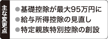 主な変更点は①基礎控除額の増加②給与所得控除の増加③特定親族特別控除の創設―です。