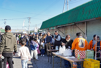 愛媛・宇摩民商は11月30日、伊予三島中央青果市場(四国中央市)で「第13回うまみんフェスタ」を開催。過去最高の約3千人の来場者で、にぎわいました。