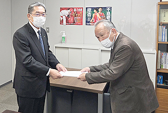 広島銀行では、権田直也副会長=鉄筋工事=ら3人が訪問。営業企画部法人企画課課長らが応対しました。