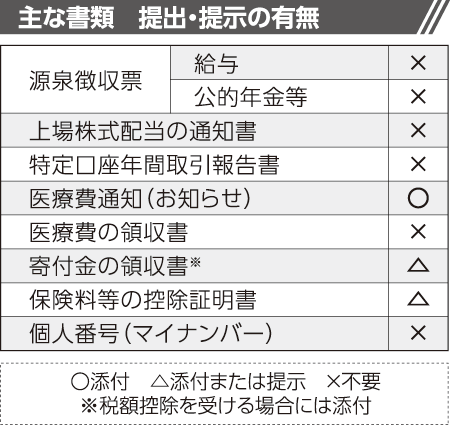 提出書類として、添付または提示となっているものは、後日、その書類を税務署以外に提出する必要がある場合もありますので、その場合には、税務署に提示して、返却を求めてください。