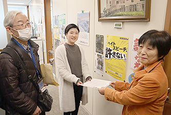 仕事で東京に来ていた兵庫県在住の百合はるみさん=助産師=は「税金が医療や福祉に回らず、軍事費に使われている。税金の使い方が、おかしい。米国言いなりの政治を変えたい」と署名する手に力を込めました。東京都内在住の大学生は「総選挙があったので、家族や友人と消費税減税の話題になりました。減税で負担を軽減することに賛成です」とサインしました。