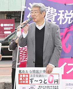 日本共産党の大門実紀史参院議員は「国民会議は、消費税の廃止をめざす党や給付付き税額控除に賛成しない党を排除する自民党の”下請け会議”だ。給付付き税額控除は、消費税の税率を引き上げるために、導入が検討されてきた制度だ。消費税は一律5%に、の声をご一緒に」と呼び掛けました。