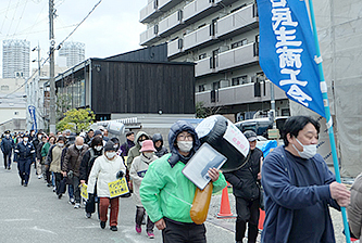 大阪府泉大津市内の「泉北集会」には、和泉高石民主商工会(民商)や泉大津忠岡民商の会員、年金者組合員ら約200人が参加しました。