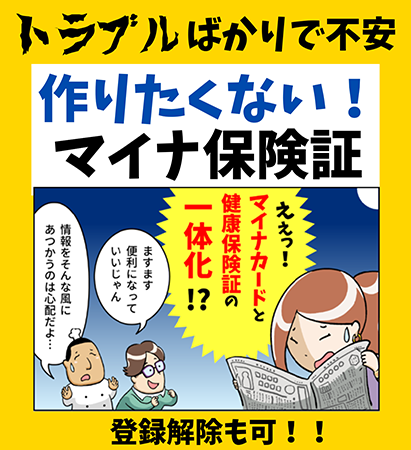 全国商工団体連合会(全商連)も加わるマイナンバー制度反対連絡会は、「現行の健康保険証を残してください」の1点で署名運動に取り組んでいます。開業医の団体である全国保険医団体連合会(保団連)は、現行の保険証を使用する意思を示すステッカーを作製・普及しています(図5)。