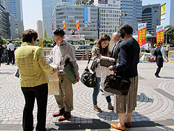 「増税されたら暮らしていけない」―。全国商工団体連合会(全商連)も加盟する消費税廃止各界連絡会(各界連)は4月24日、東京・JR新宿駅西口で定例の宣伝行動を実施しました。野田内閣が「社会保障と税の一体改革」関連11法案の一括審議を狙おうとする情勢の下、7団体24人が参加し、増税反対署名を51人分集めました。