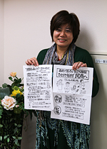 イラスト入りの手書きチラシを作成して増税中止を訴えているのは岐阜・中濃民商の大塚恵子さん=建築。「専門用語や漢字ばっかりでもう拒否反応。固い活字やパソコン文字では気持ちが伝わりにくい」と手書きでチラシを作ることに。消費税の学習会で輸出大企業の輸出戻し税のことを知ったとき、大塚さんは「なんで? インチキや」と激怒。「輸出大企業は消費税を払っていないんですよ。還付金として戻ってくるんです。消費税は輸出大企業のためにあるんです。社会保障にはまったく使われていない」ことをチラシに書いて班会で活用し、宣伝行動でも配りました。