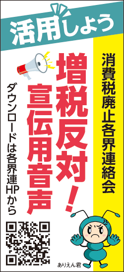 「10月からの10%増税は絶対反対」「消費税は商売を壊す」─。消費税導入から30年を迎えた4月1日、全国各地の民主商工会(民商)や「10%ストップ!ネットワーク」は、消費税反対の宣伝行動を行いました。
