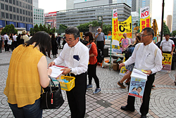 「今からでも遅くない」と消費税増税中止署名を呼び掛けた消費税廃止各界連絡会の宣伝(JR新宿駅西口)